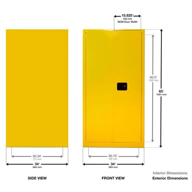55 Gallon 1 Drum Horizontal Flammable Cabinet with Cradle Track, 2 Doors, Manual Close, Yellow